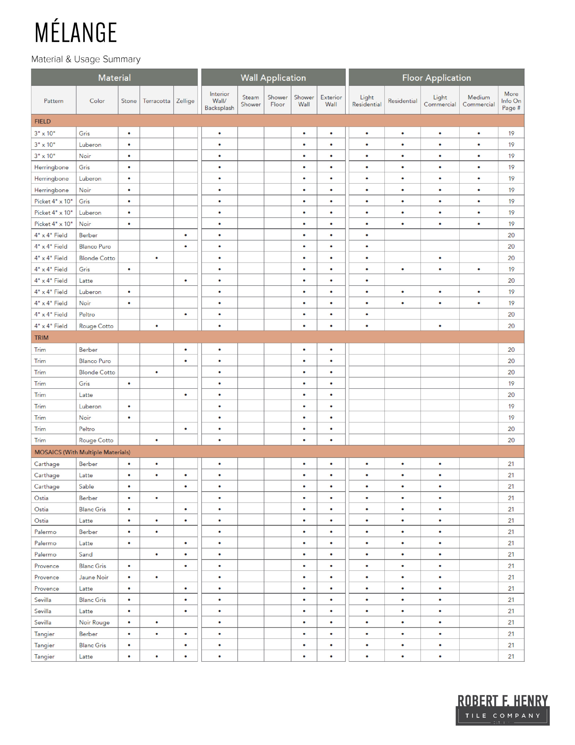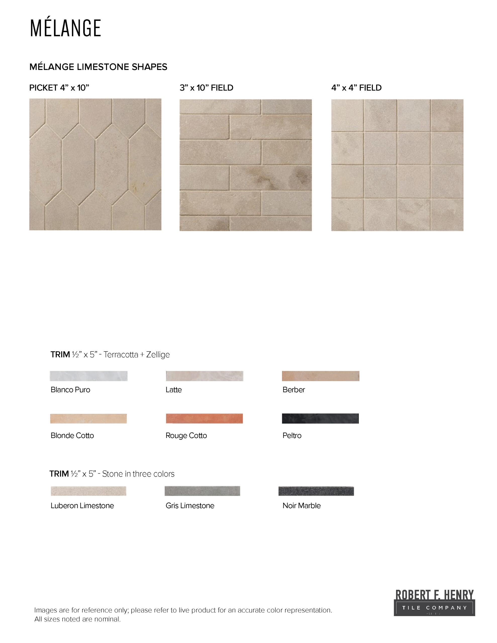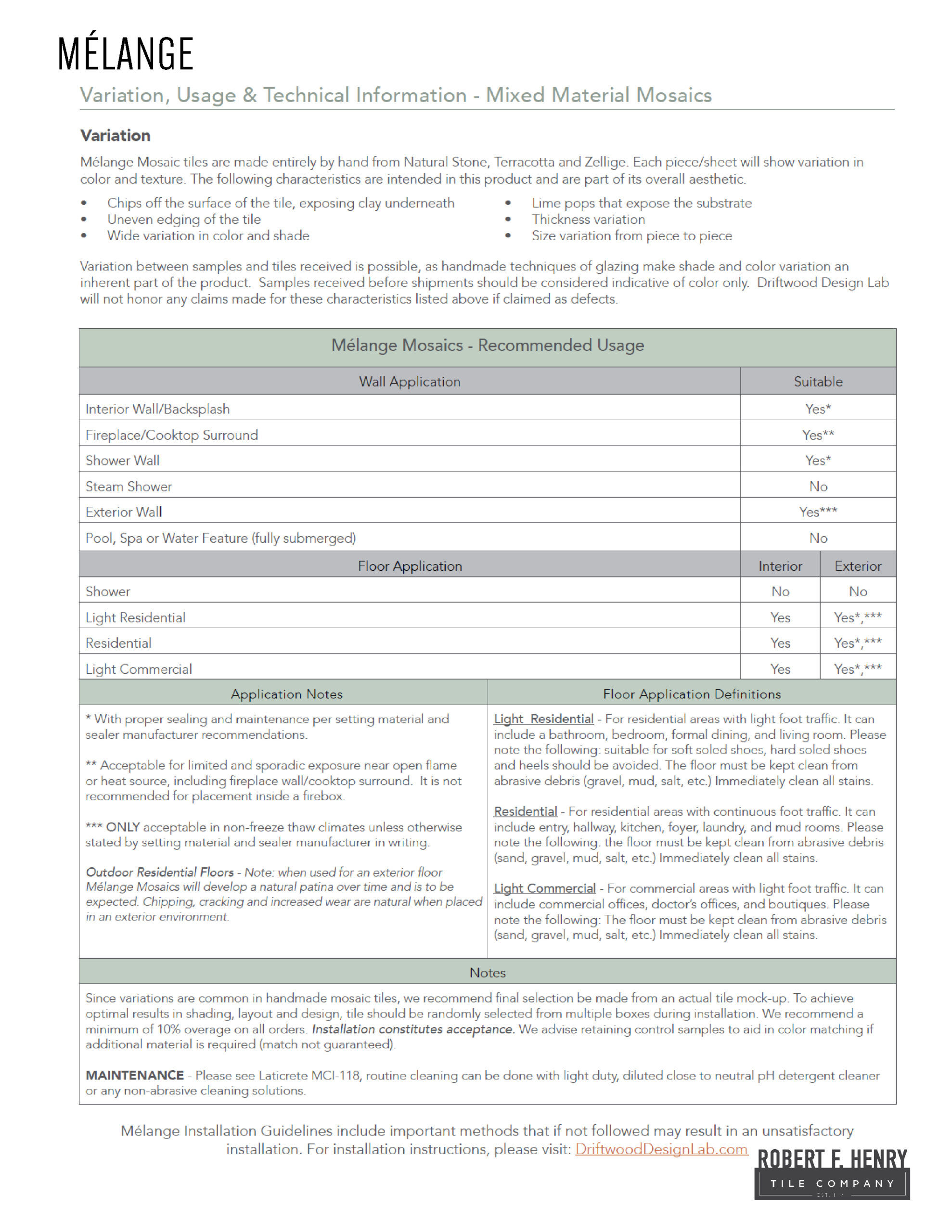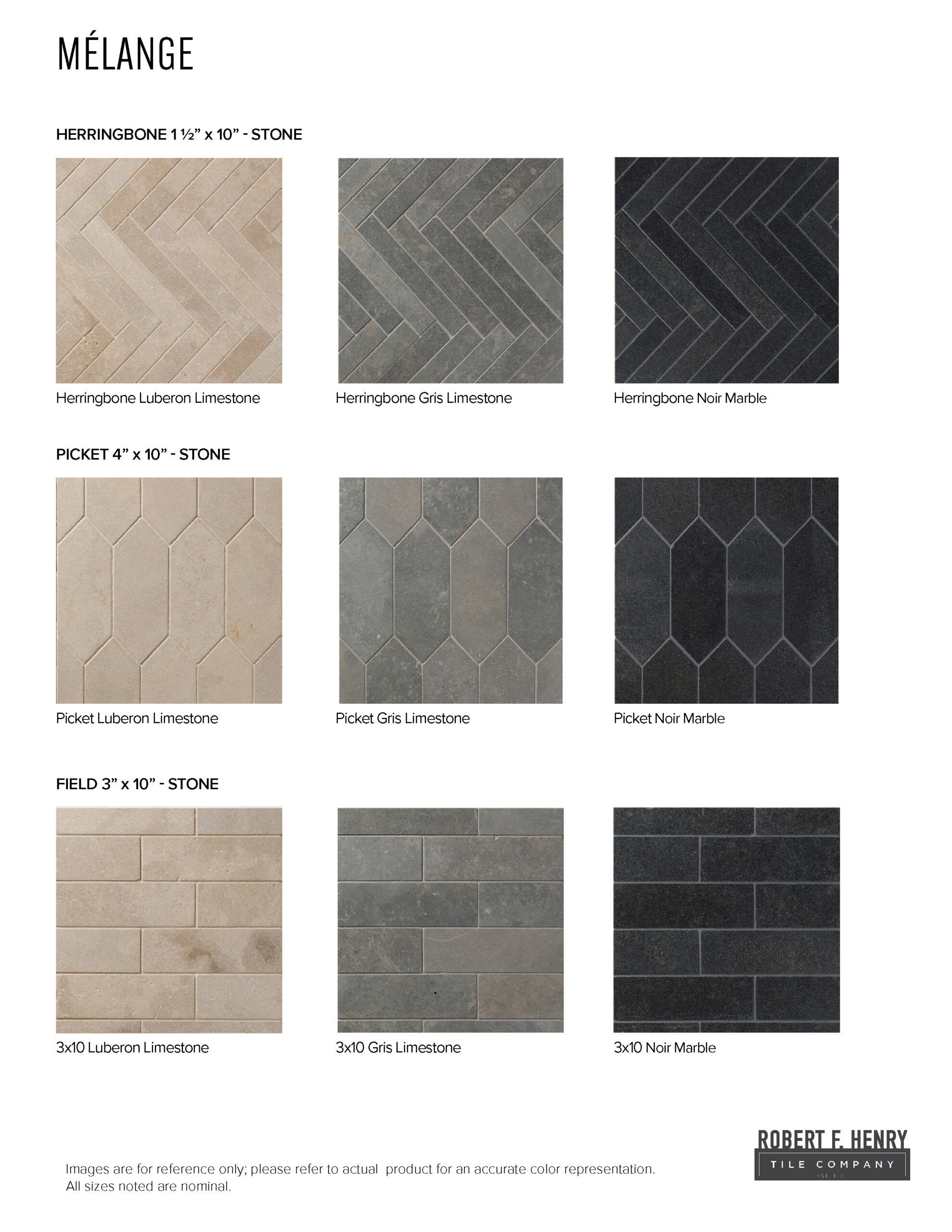 Mélange is a collection of mixed materials with design influences from Morocco, Italy, Spain and France. Crafted, cut, and mounted by hand. This special order line is exclusive to Robert F. Henry Tile.