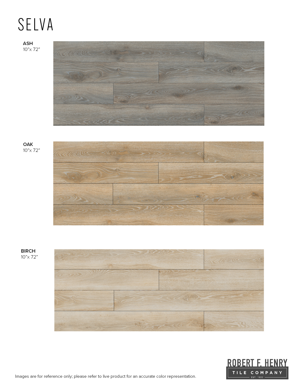• 10”x 72” porcelain planks