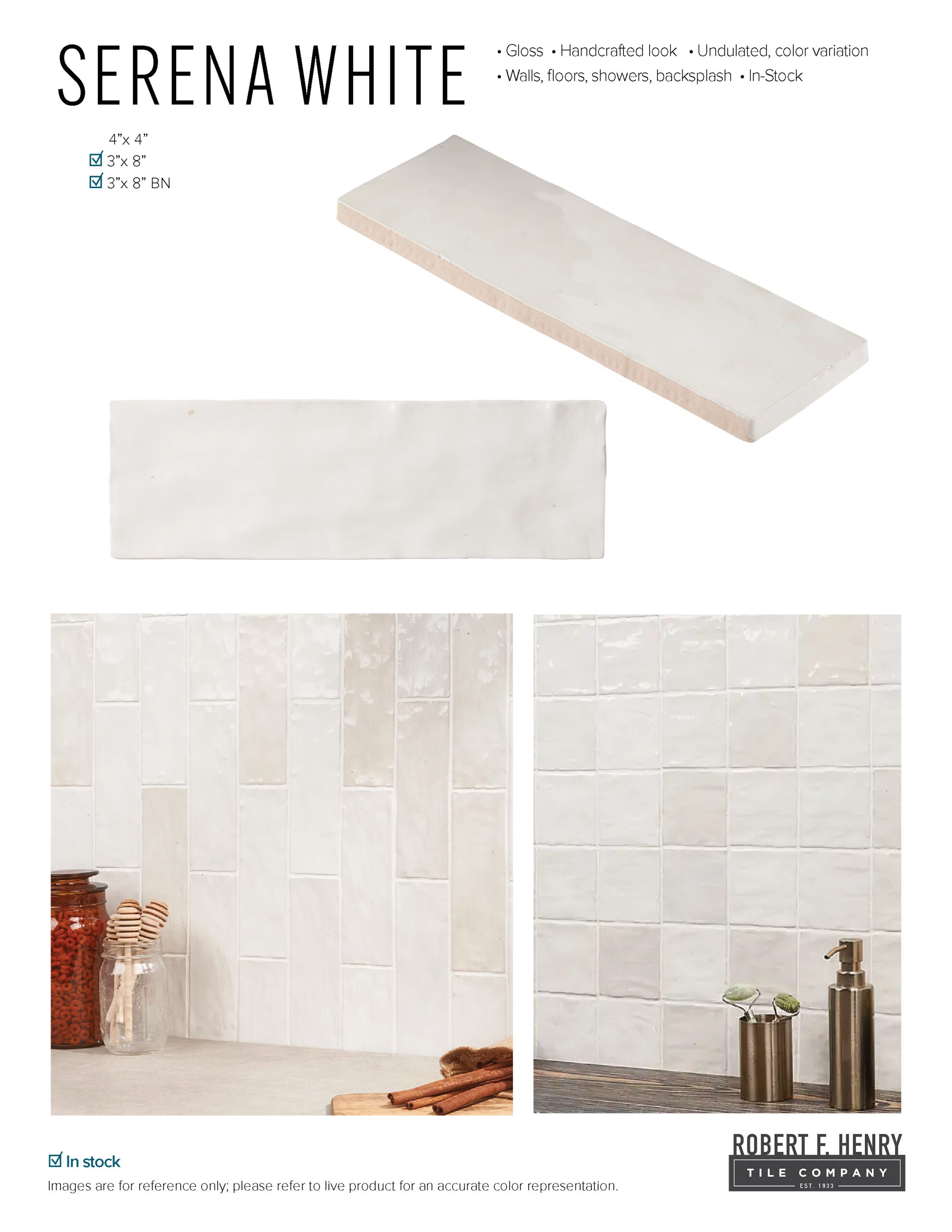• Gloss • Handcrafted look • Undulated, color variation • Walls, floors, showers, backsplash • In-Stock Download pdf