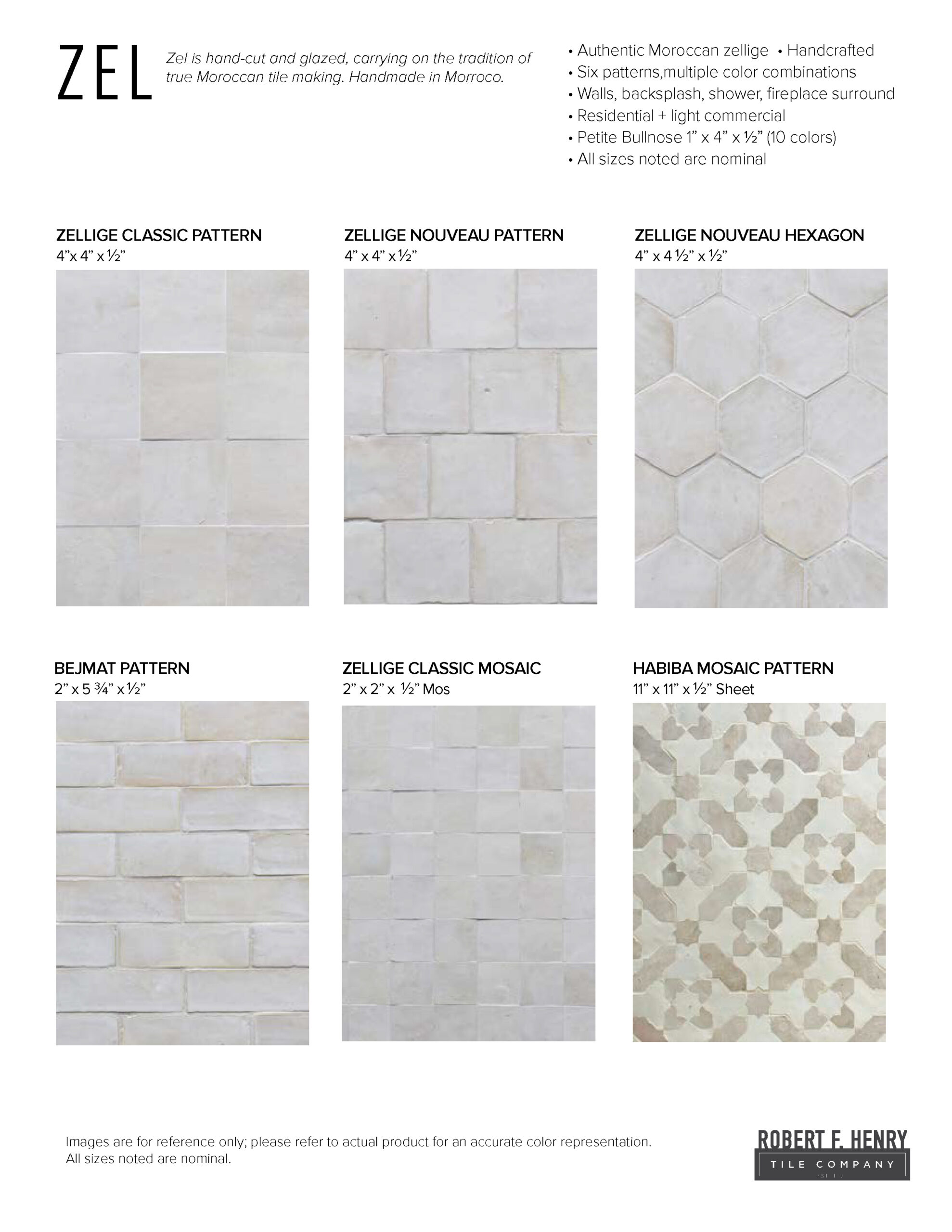 Zel is hand-cut and glazed, carrying on the tradition of true Moroccan tile making. Handmade in Morocco.